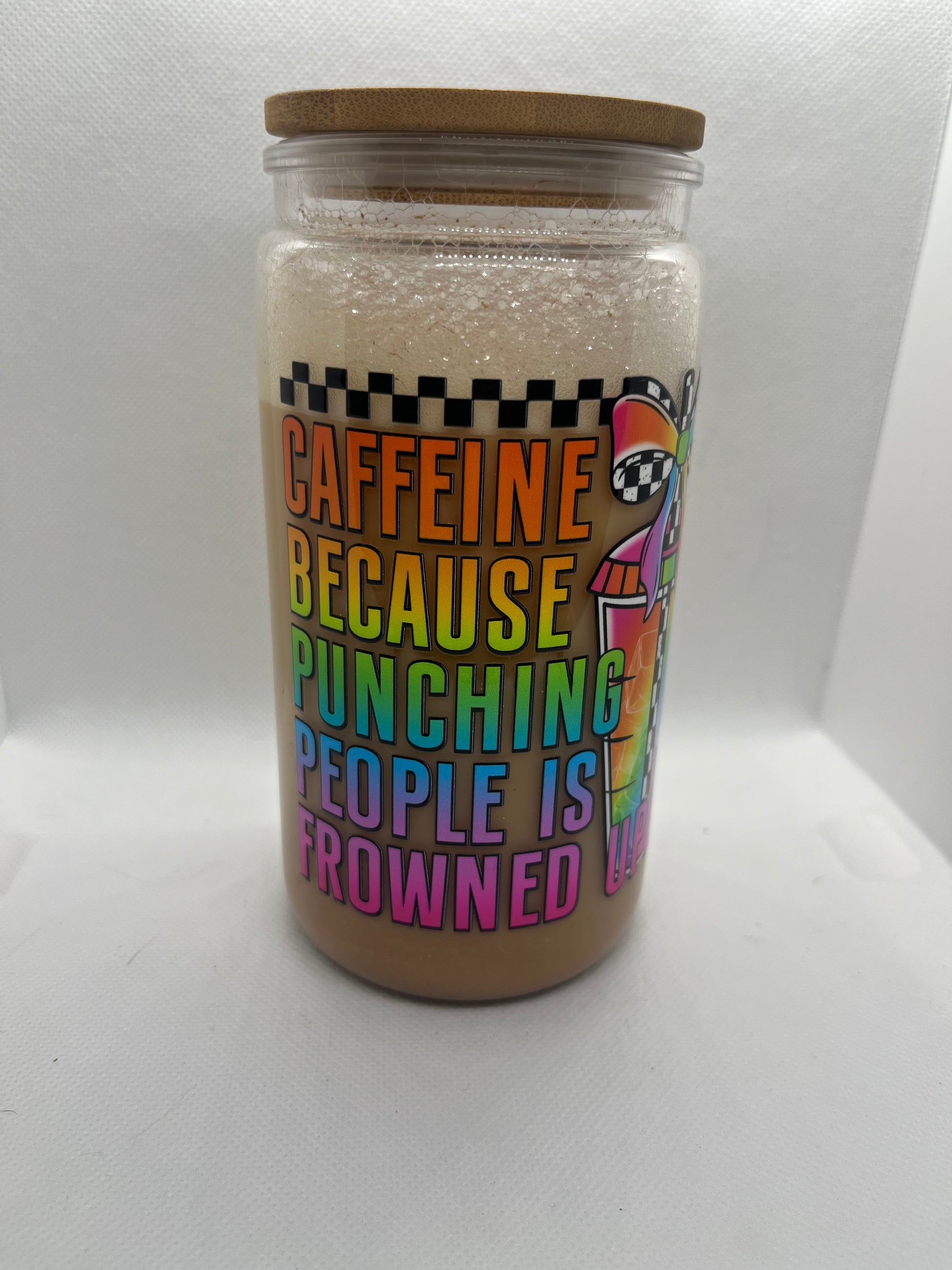 Caffeine Because Punching People Is Frowned Upon Plastic Tumbler – 16 oz