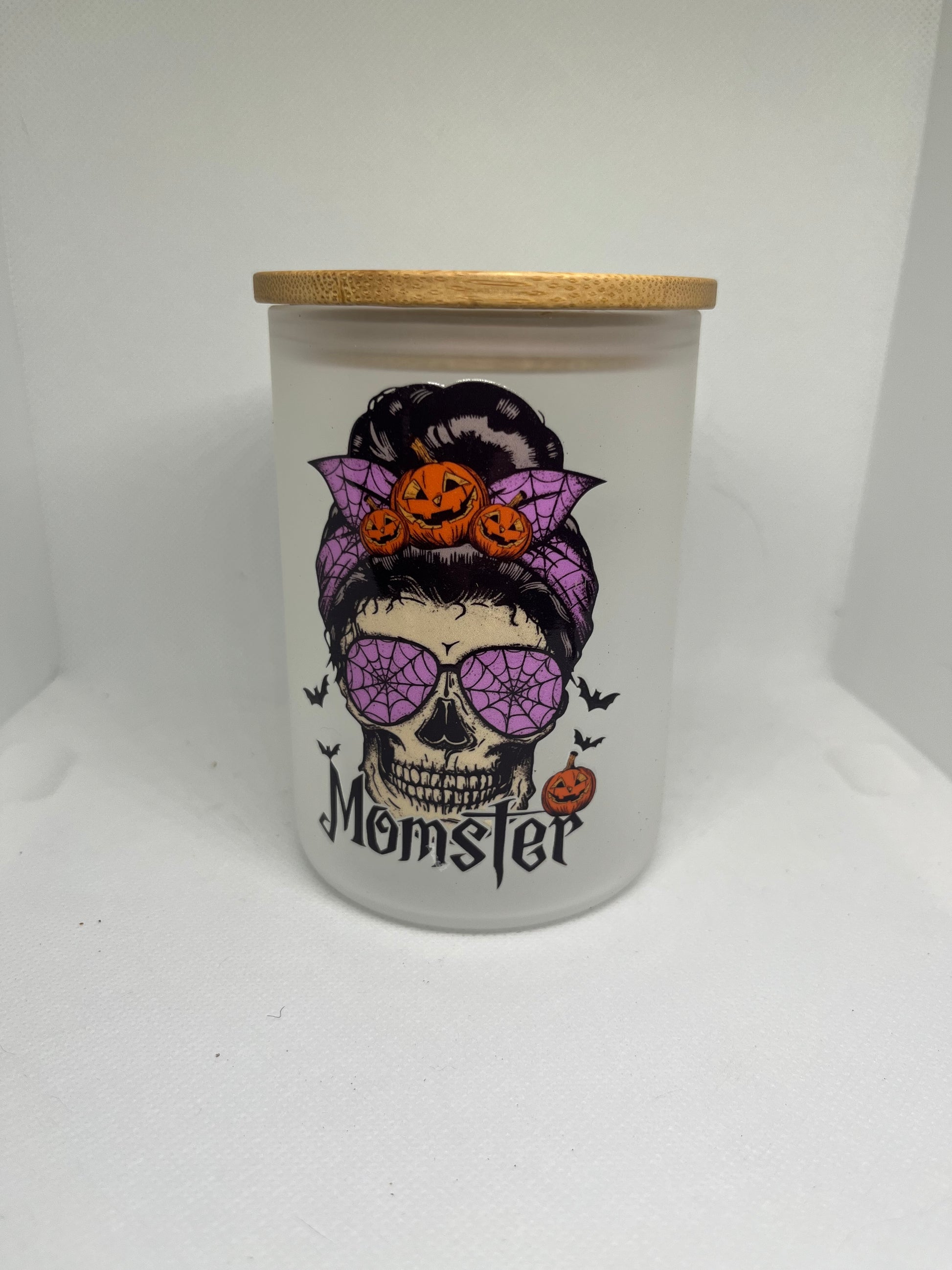 Monster Mom Halloween Frosted Glass Mug with Bamboo Lid
