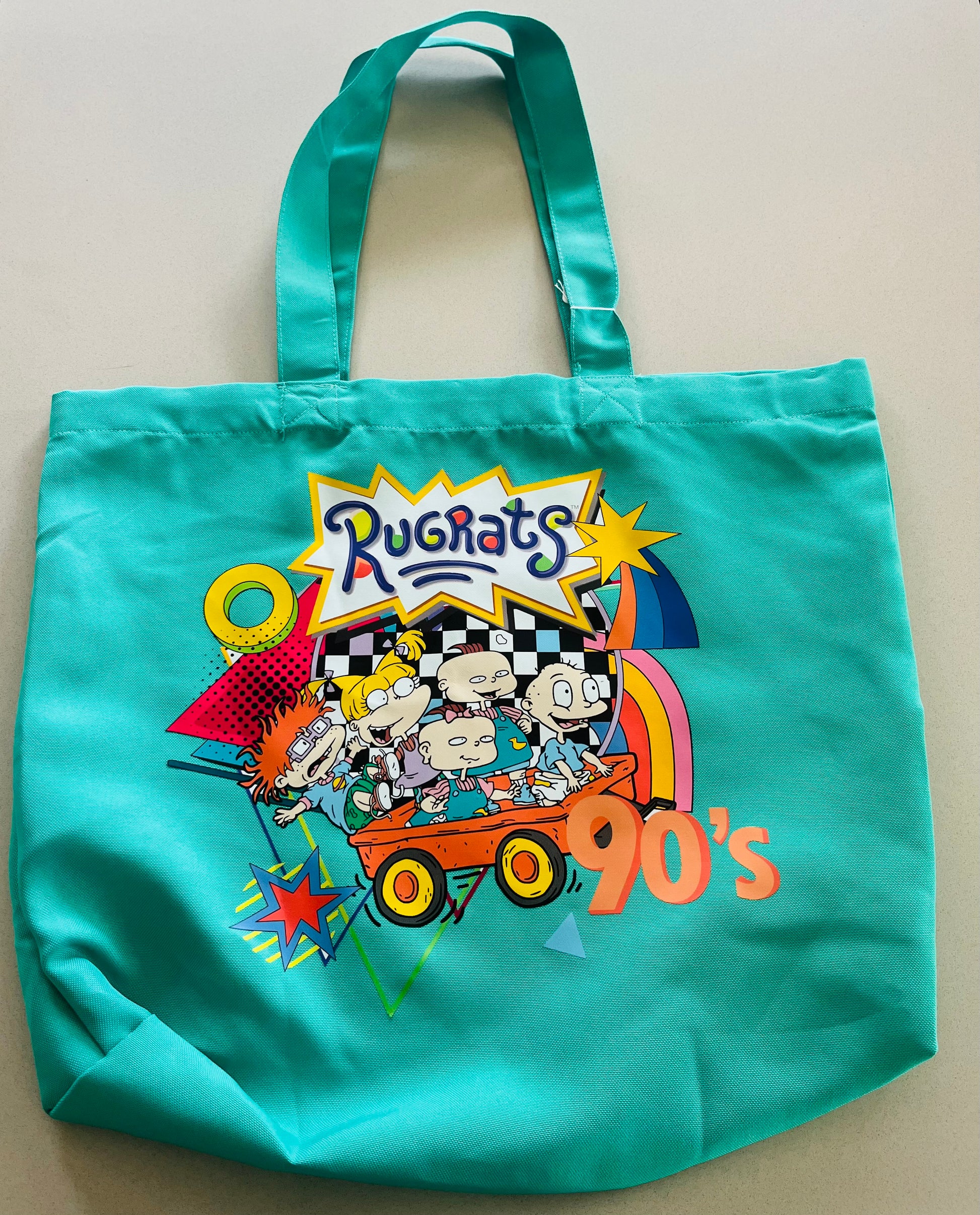 Bright teal canvas tote featuring classic Rugrats artwork with bold 90’s flair. Perfect for errands, shopping, or showing off your throwback cartoon love.